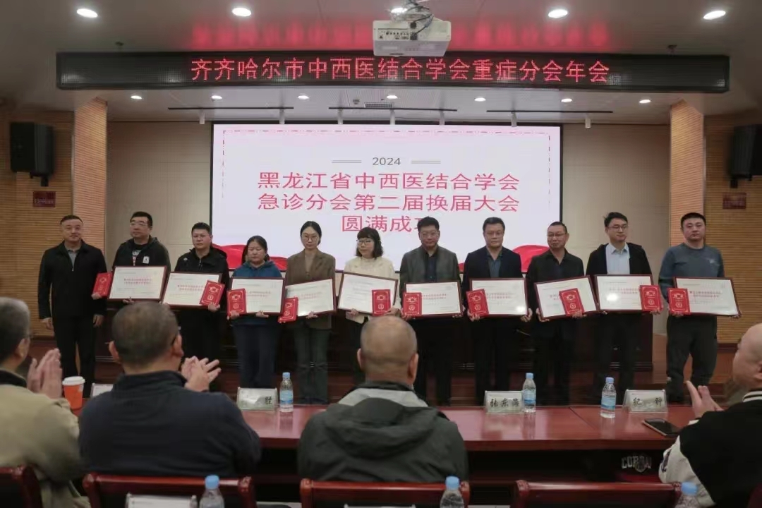 2024年10月12日,黑龙江省中西医结合学会第二届急诊分会换届大会暨学术研讨会、齐齐哈尔市中西医结合学会重症分会年会在齐齐哈尔市中医医院南院行政办公楼二楼多功能报告厅盛大召开。黑龙江省中西医结合学会副会长兼秘书长关立峰,齐齐哈尔市中医医院党委书记钟声,齐齐哈尔市中医医院副院长朱丹等领导,以及来自省内各地医疗机构的100余位业界同仁齐聚一堂,共襄盛举。 换届大会 会议伊始,朱丹副院长代表齐齐哈尔市中医医院发表了热情洋溢的致辞,为大会拉开序幕。 朱丹副院长致辞 随后,关立峰副会长兼秘书长在致辞中强调了此次会议的重要意义。 关立峰副会长兼秘书长致辞 会议经过选举产生了黑龙江省中西医结合学会第二届急诊分会会长、副会长、常务委员、委员。齐齐哈尔市中医医院南院重症医学科主任何春来成功当选分会会长,纪钟、马财芝等14名同志当选为副会长,35名同志当选为常务委员,92名同志当选为委员。 与会领导为新当选的分会会长、副会长颁发了聘书及牌匾,这一时刻充满着对他们的肯定与殷切期待。 关立峰副会长为分会会长、副会长 颁发牌匾及聘书 新任分会会长何春来讲话 学术研讨会 换届选举落幕后,精彩的学术研讨会随即展开。哈尔滨医科大学附属第二医院王怀泉教授、哈尔滨医科大学附属第一医院费东生教授以及黑龙江中医药大学附属第二医院蔡国锋教授分别带来了以《老年患者与多脏器衰竭》《心源性休克的诊疗》《交叉电项针在重症早期应用》为主题的专题讲座。三位专家深入浅出地讲解、丰富的临床经验分享以及前沿的学术理念,为参会者们呈现了一场精彩绝伦的学术盛宴。 此次大会的成功举办,不仅为黑龙江省急诊医学领域的人才搭建了交流合作的平台,更为中西医结合急诊医学的发展注入了新的活力与动力,相信在新一届急诊分会委员们的共同努力下,黑龙江省急诊医学事业必将迈向新的高度。 参会代表合影